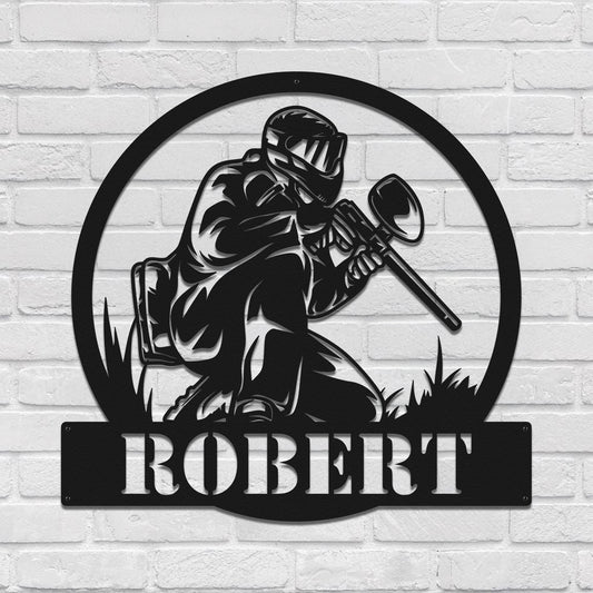 Rustic Paintball Metal Sign - Custom Player Wall Art with Name, Personalized Sports Room, Garage or Man Cave Decor, Gift for Paintball Lover