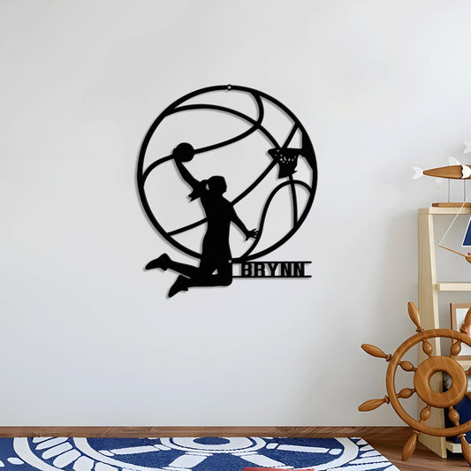 LED Female Basketball Metal Wall Art - Personalized Name Sign for Nursery, Kids Room, Game Room, or Birthday Gift for Girls
